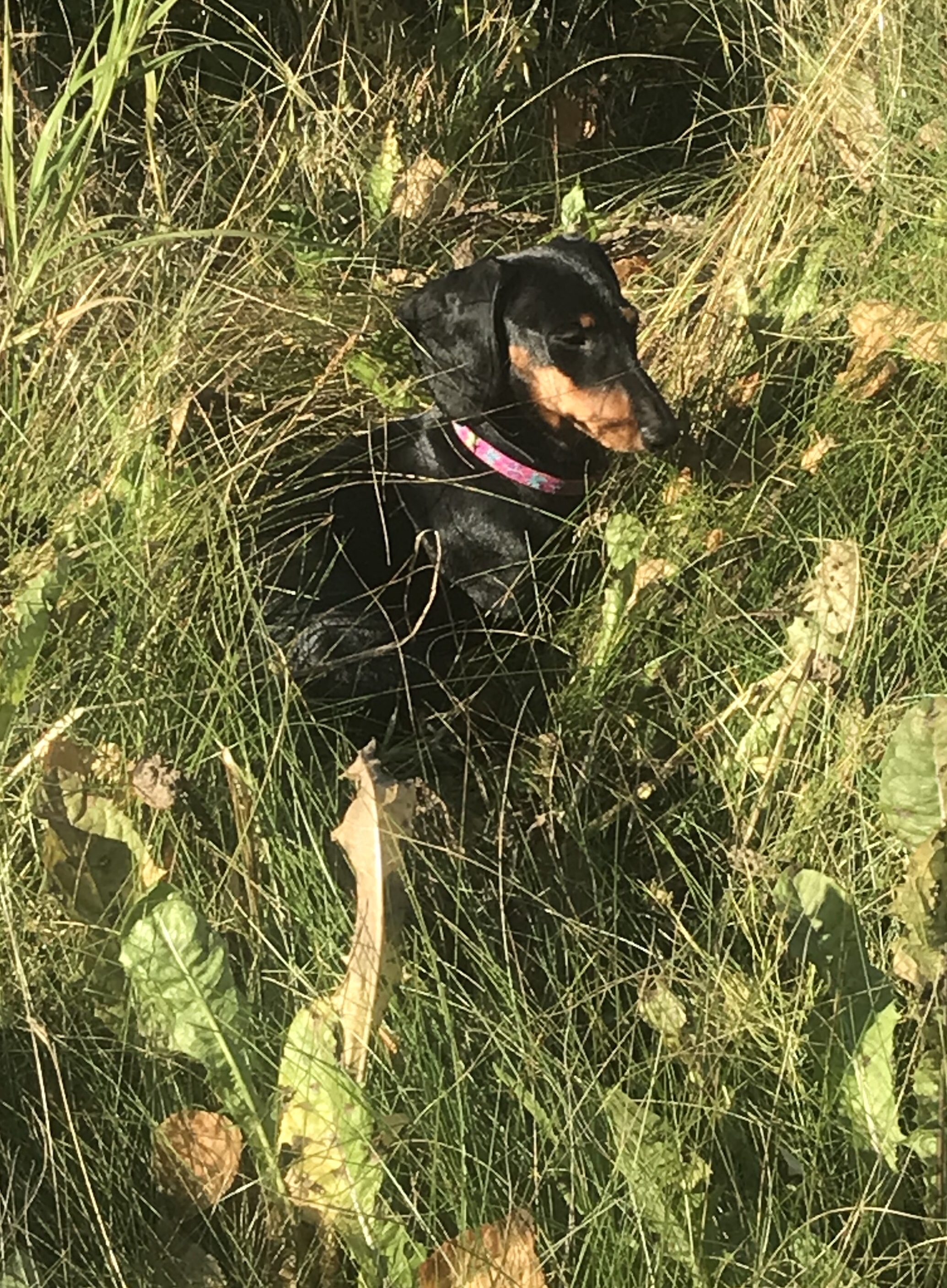 Rhonda was bred for field trials and scent work. She comes directly from working European bloodlines and has prey drive to spare. No surprise this small Standard Dachshund took to hunting for rats and other small rodents with wild abandon.