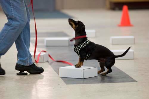 It seemed like no time at all before we’d graduated from Beginner Nose Work and Nose Work- Intro To Odor class and Baxter was enthusiastically finding tiny hidden tins or straws with birch-oil-scented Q-tips to earn the prize of hot dog, cheese or chicken treats. Together, we learned to search vehicles, found ‘hides’ under chairs and on top of tables (yes, really – small dogs can do high hides!), learned to smell out hidden treasures high and low, indoors and outdoors and gained confidence along with skill. Slowly but surely, we became a team. Baxter and I not only learned a new game together, but he learned to be comfortable and at ease in different environments and more relaxed around strange people and new dogs. Nose Work classes had been the highlight of his week for months – so what next?