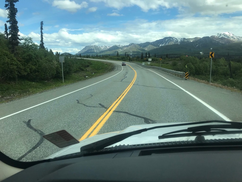 I have been a big fan of the section of the Glenn Highway from Palmer to Glennallen for all the years I’ve lived here (over twenty years now). It’s not the best *road* ever, and you really need to pay attention to staying in your lane on the winding two-lane road – especially in an RV – as well as watching for potholes, ice heaves, rough patches and bumps. Fortunately, there are quite a few passing lanes and pull-outs, so no reason to stress over moving more slowly than smaller, more agile vehicles.