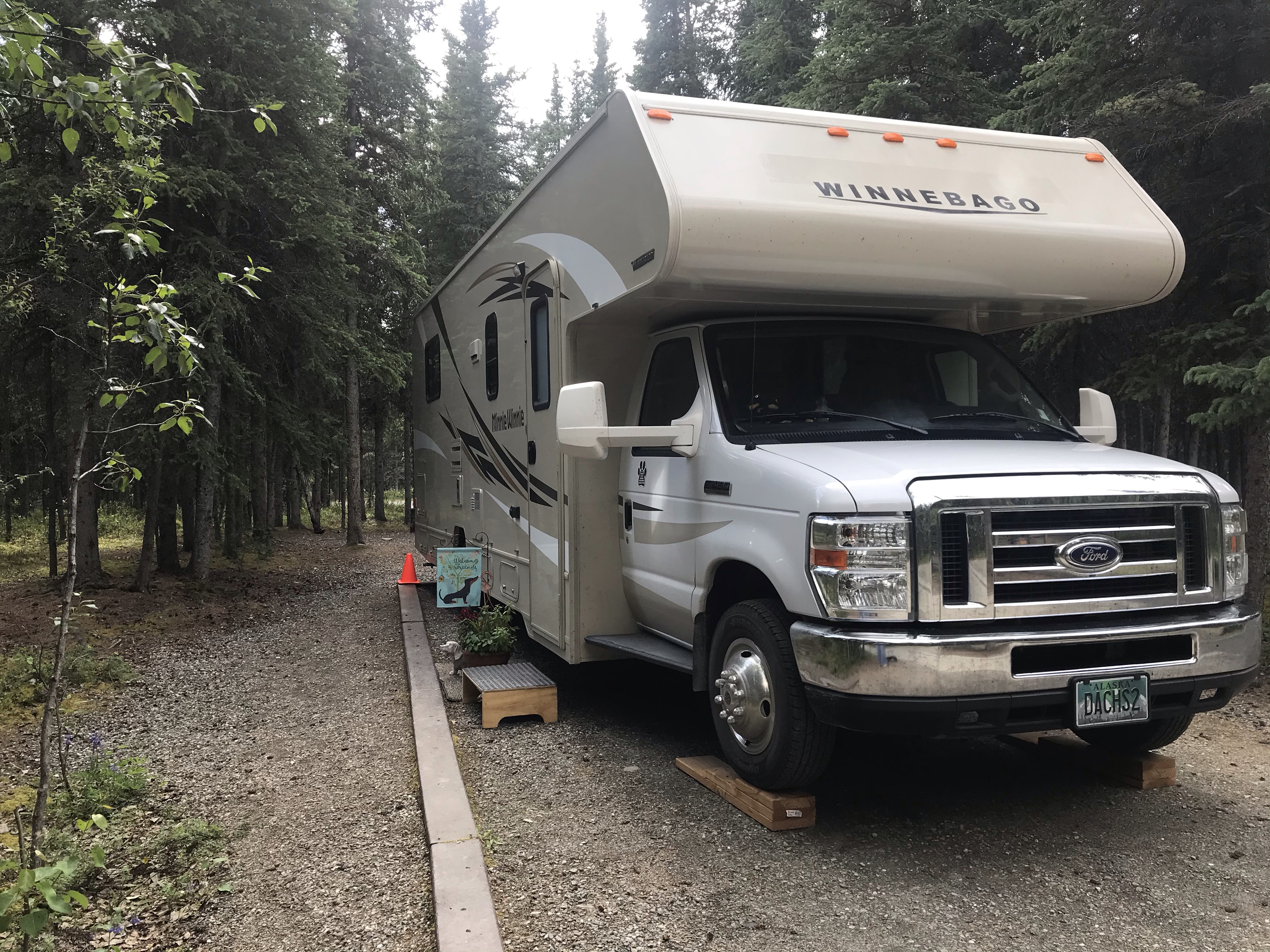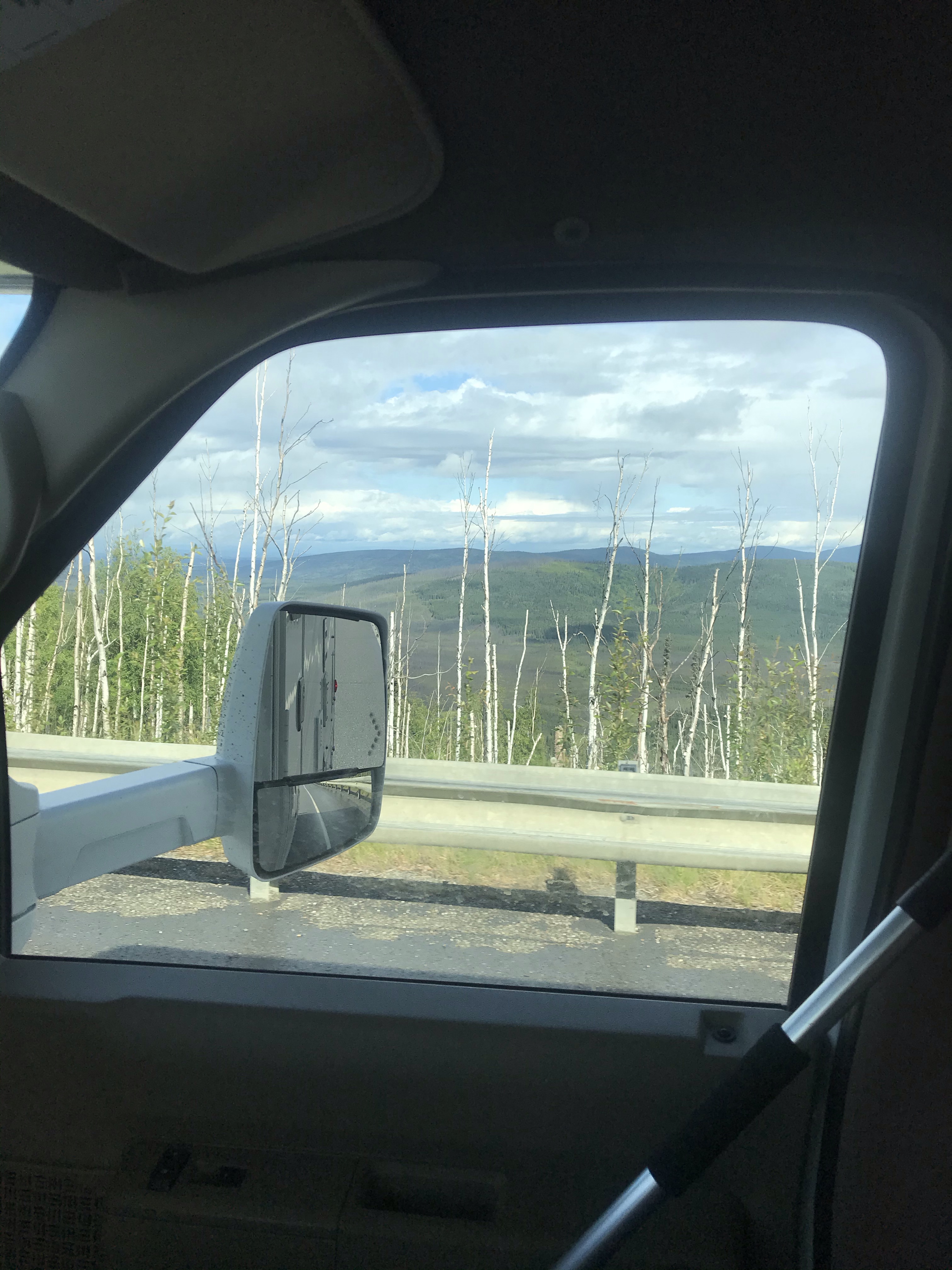 The scenery, and even the weather, improved as we neared Denali National Park & Preserve. I stopped and walked back out over the highway bridge to get this photo of the mighty Nanana River – it was eerily silent, not a single vehicle passed me while I walked out to take these shots and then back to the RV.