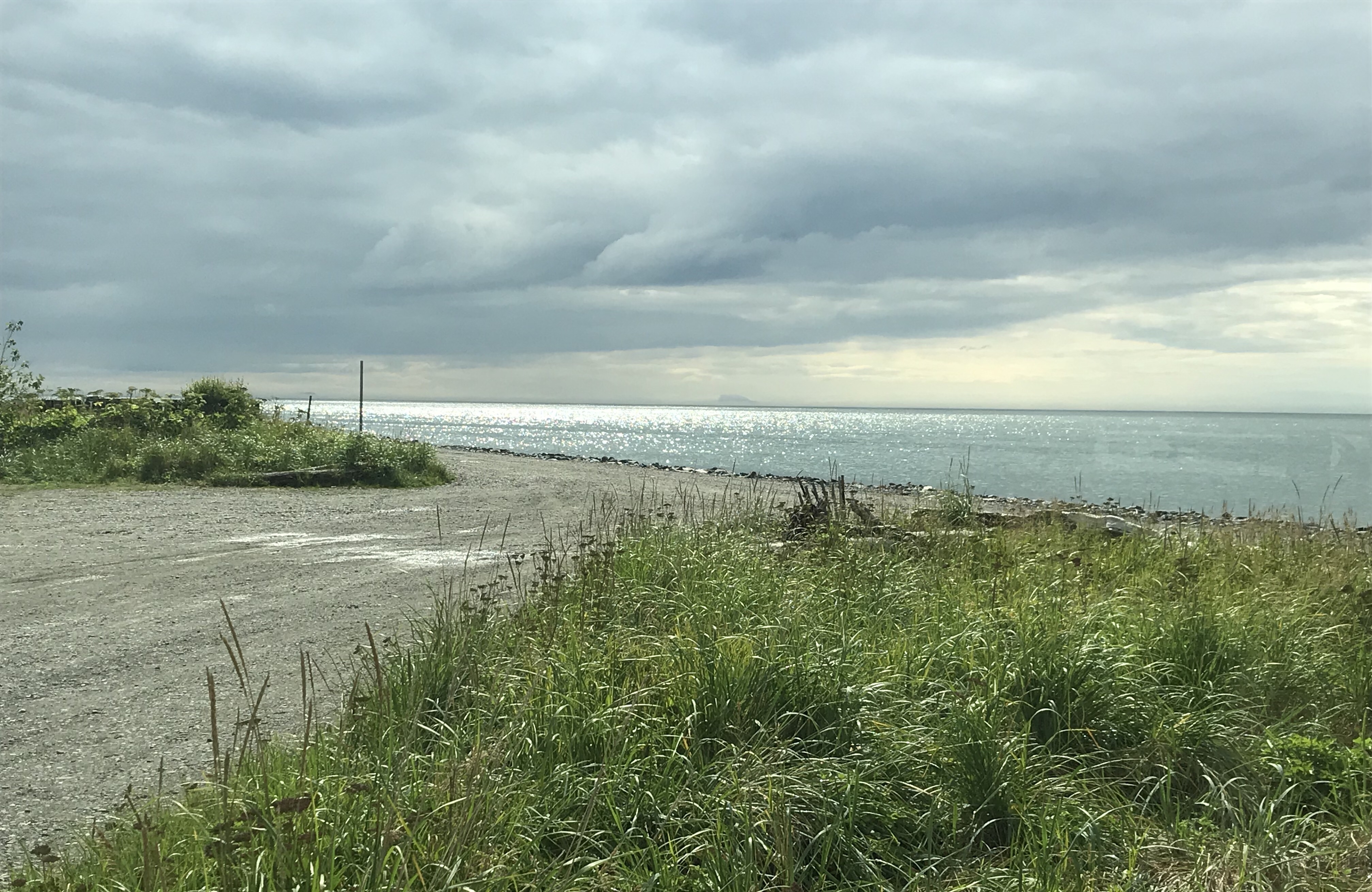 I left Sterling on a rainy Monday afternoon, trusting the weather forecast would be correct for once. A couple of hours later, I turned “Roada” towards the ocean and down a steep, winding road leading towards what looked like a muddy boat ramp parking lot.