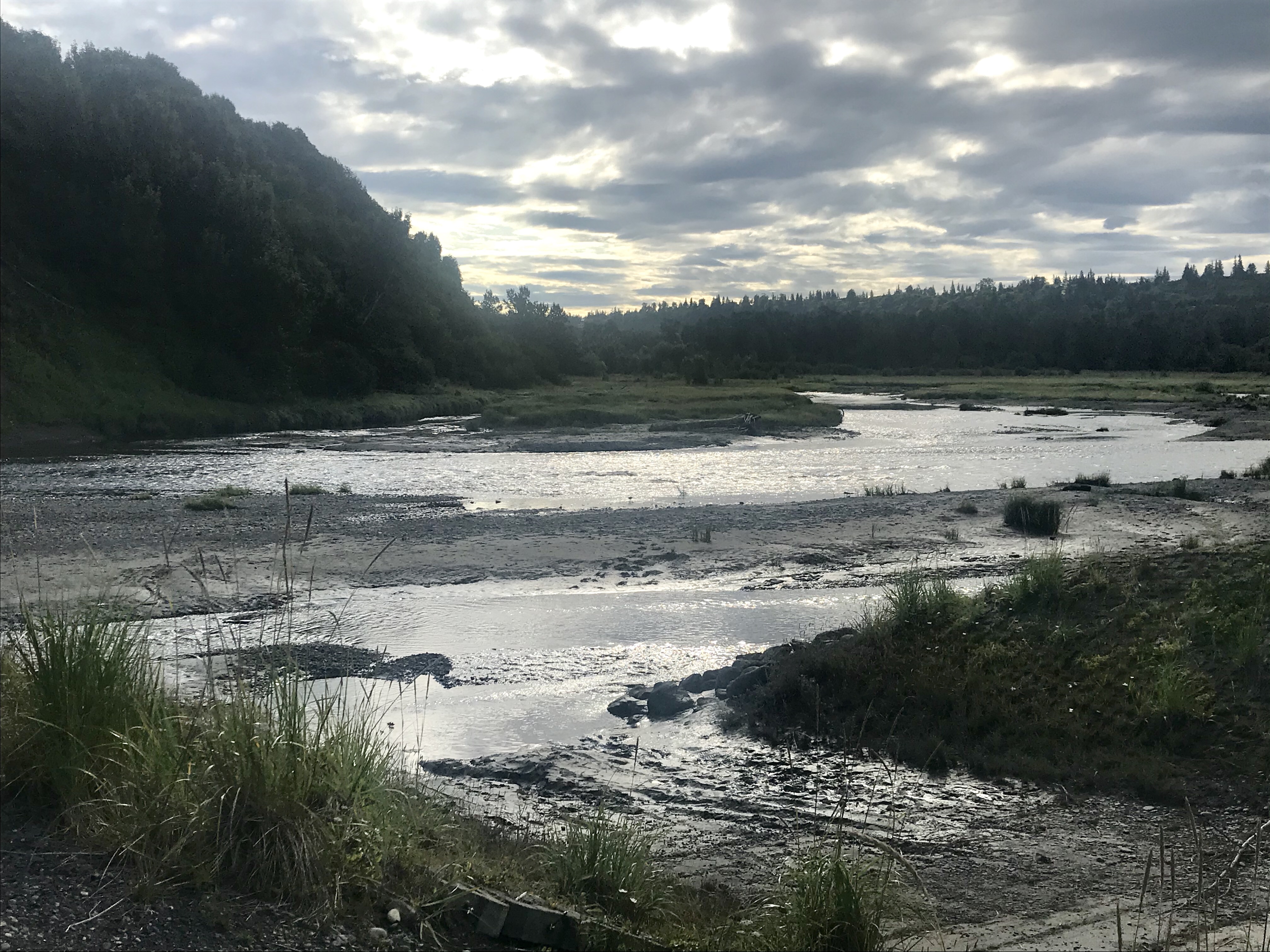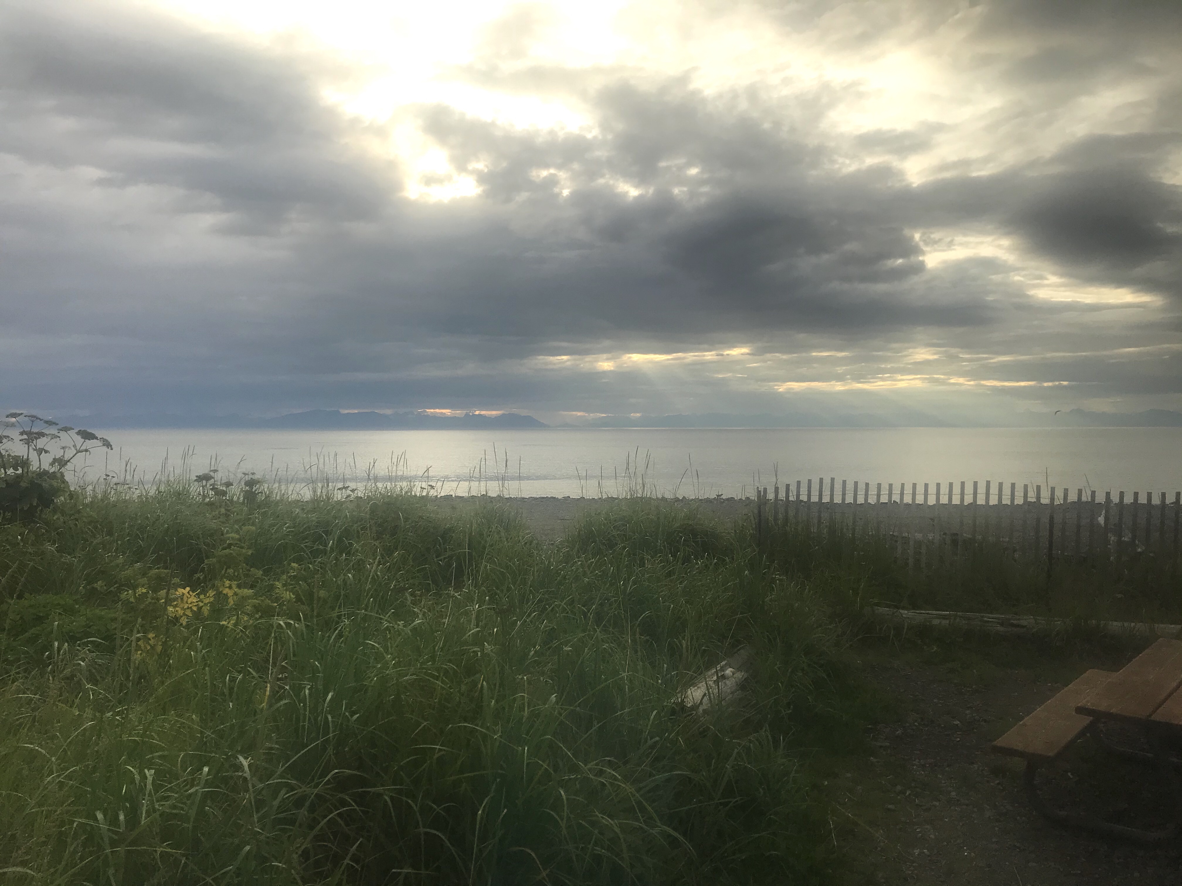 The mountains and volcanos across the inlet winked into and out of view as the storm clouds broiled. I sat, transfixed, well into the evening as the tide came in and the clouds rolled on.