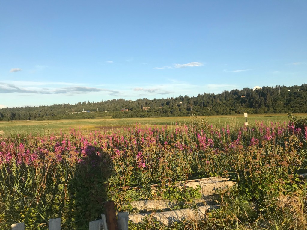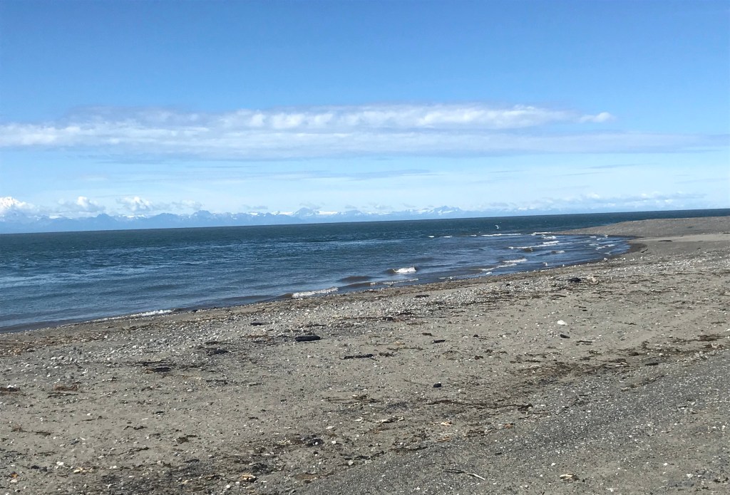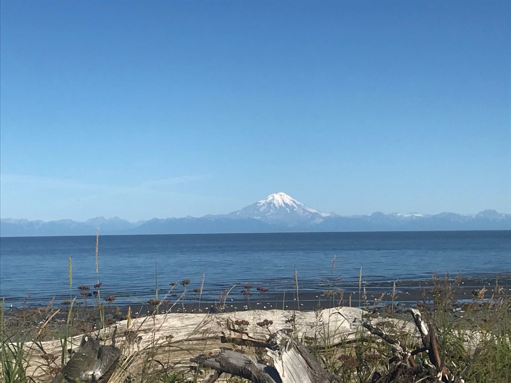 Every day in Ninilchik, the scenery seemed to change by the hour. The tide going out exposed a whole new beach to explore, while high tide pounded a short distance from my campsite. The family of four eagles (brilliant white-headed parents with a pair of shaded brown adolescent offspring, I’m pretty sure) added delightful aerial acrobatics for my viewing pleasure several times a day.