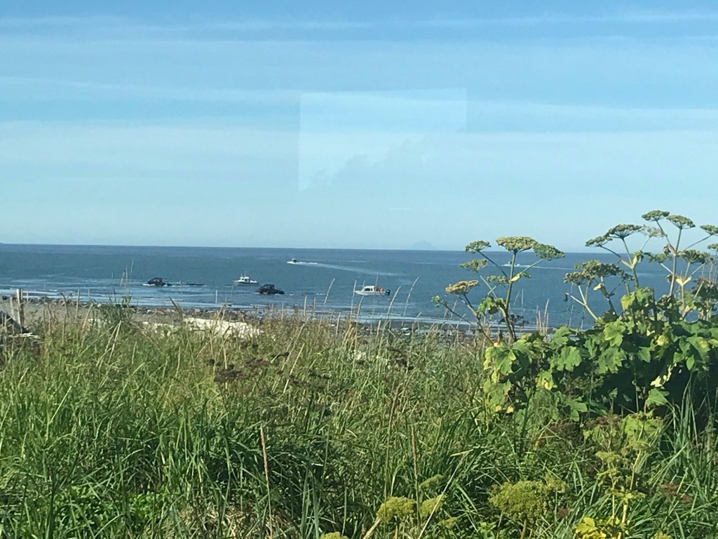 I was able to sit outside in my camp-rocker a good deal, dogs napping in the sun at my feet as I read and listened to the musical combo of ocean waves and birds. The latter consisted of several species of seagulls, ravens, small shore-birds and quiet often, bald eagles.
