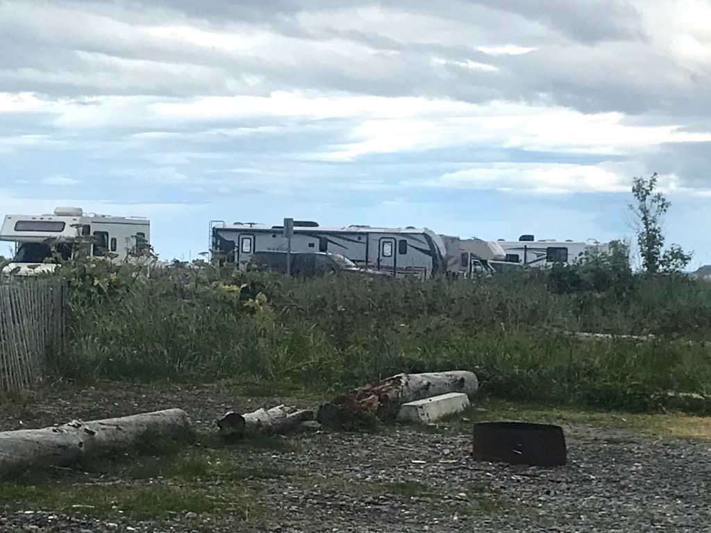 Then, for whatever reason, there is everyone else in the campground … 7-8 RVs, all jammed side by side in the one small “ocean-front” area, so close together it may as well be a parking lot. Only the RVs on either end could possibly have a decent view of the water.