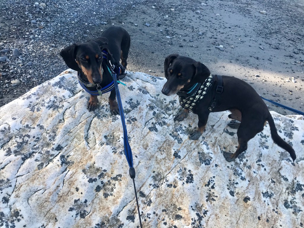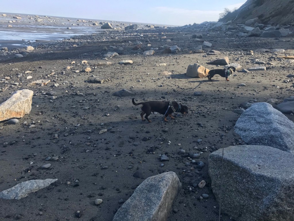 The long walk to the beach, along with our rock hunting and following along at the end of dogs leashes as Baxter and Ronni investigated wonderful new sights and smells, eventually wore us out.