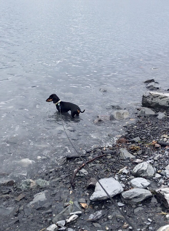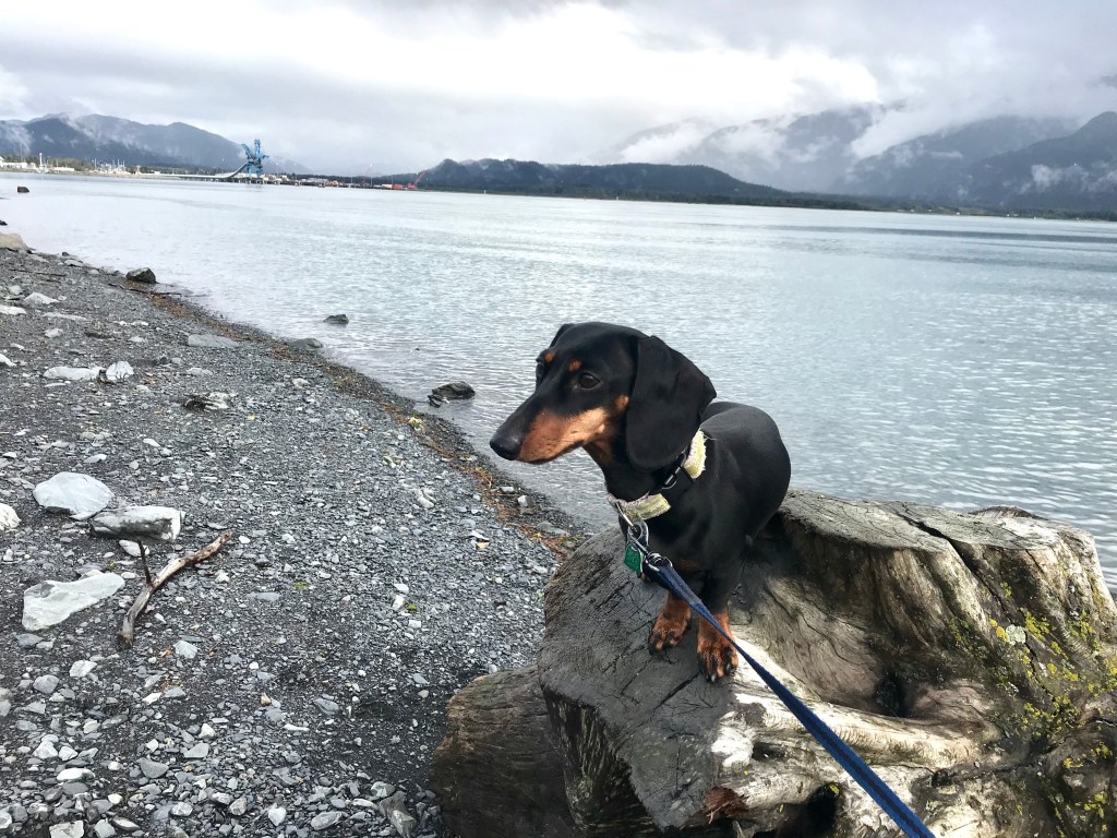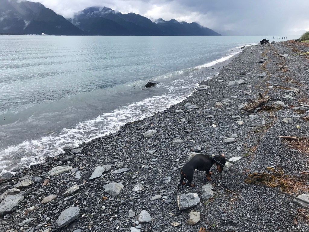 It’s morning on Resurrection Bay in Seward, Alaska. Taking Ronni for a morning walk in this setting is anything but a chore.