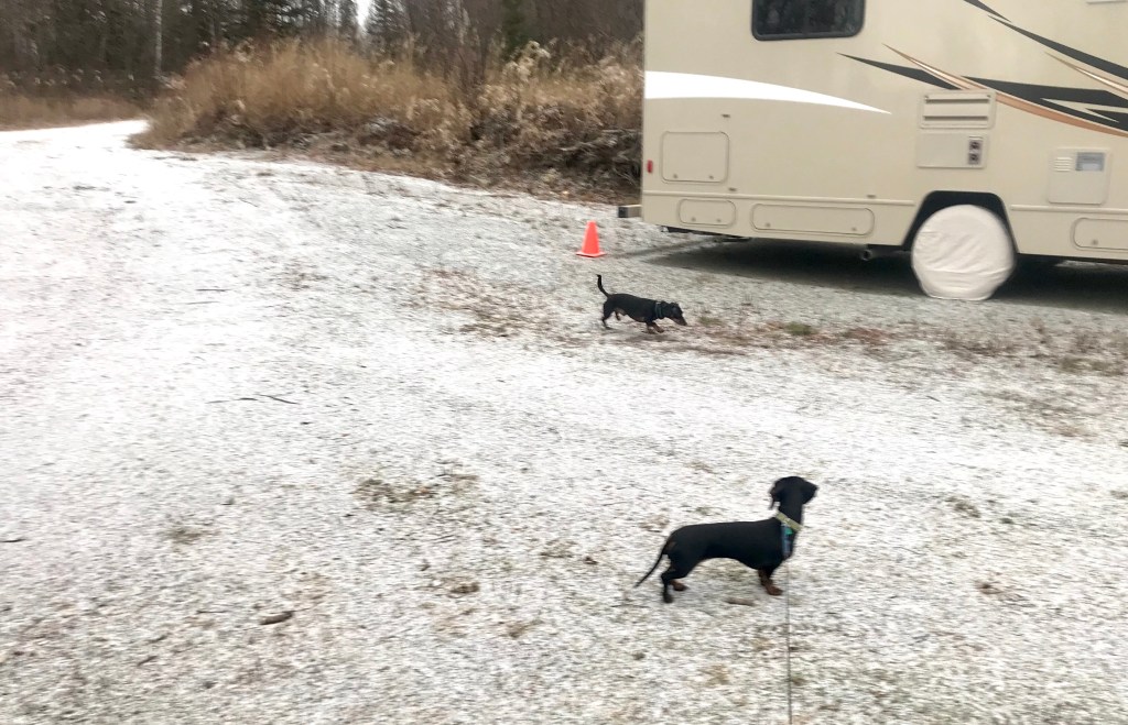 I awoke to THIS. It’s not much [yet], but officially, the wait is over. Baxter and Rhonda are not overly impressed.