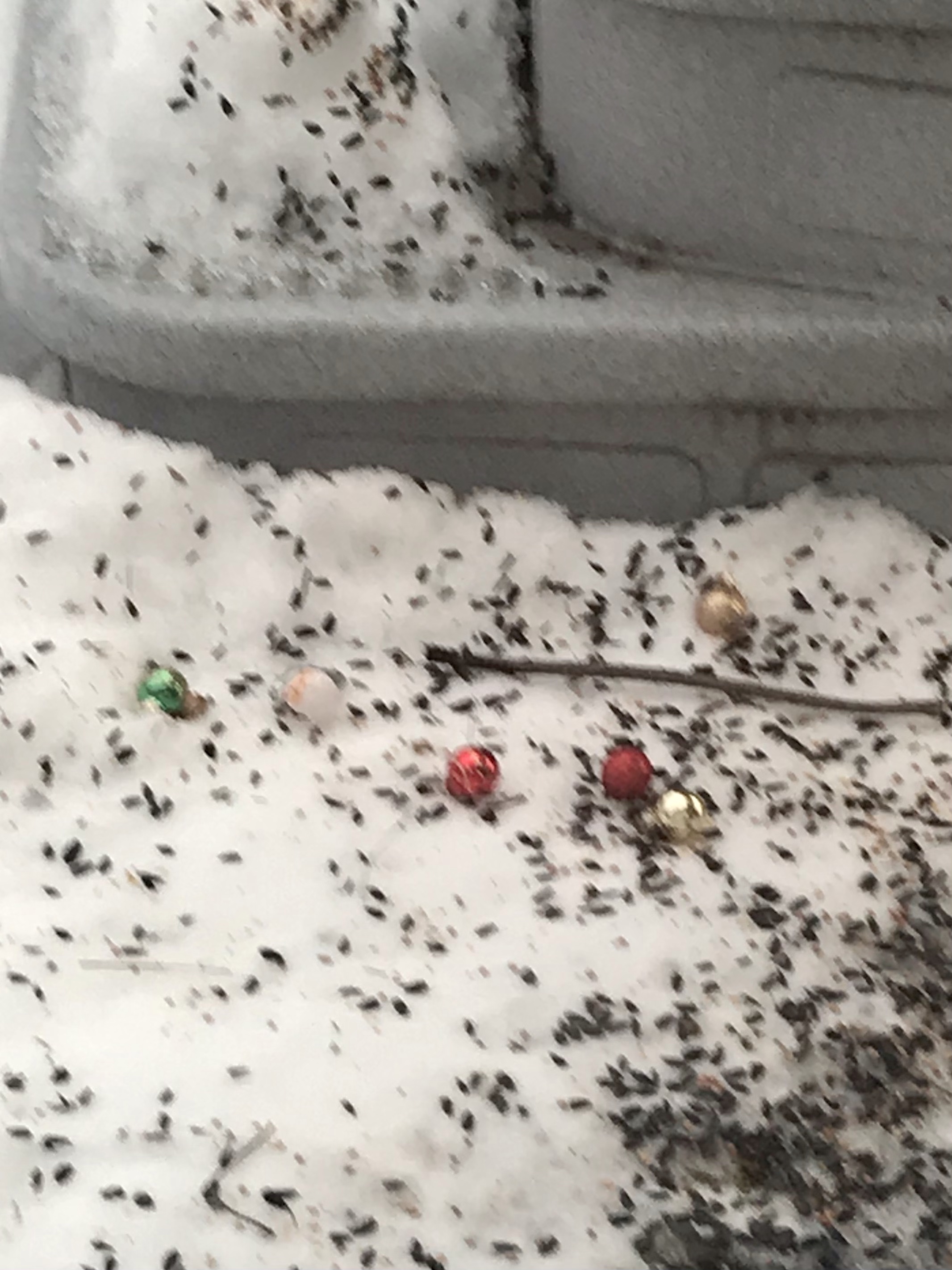 A few ornaments probably won’t be rediscovered until next summer, when the snow in the yard is gone and grass is growing … if then. Who knows; some lucky raven might have a shiny new bauble brightening up its nest next spring. Re-use, recycle, re-imagine, right?