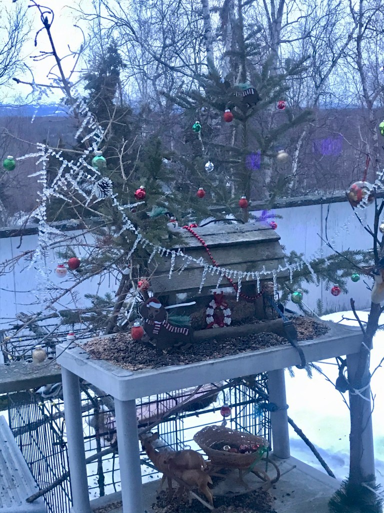 I’ll admit, I really enjoy watching the birds dart in and out, oblivious to the sparkle and movement. I’m so glad I created this little piece of Christmas spirit for myself.
