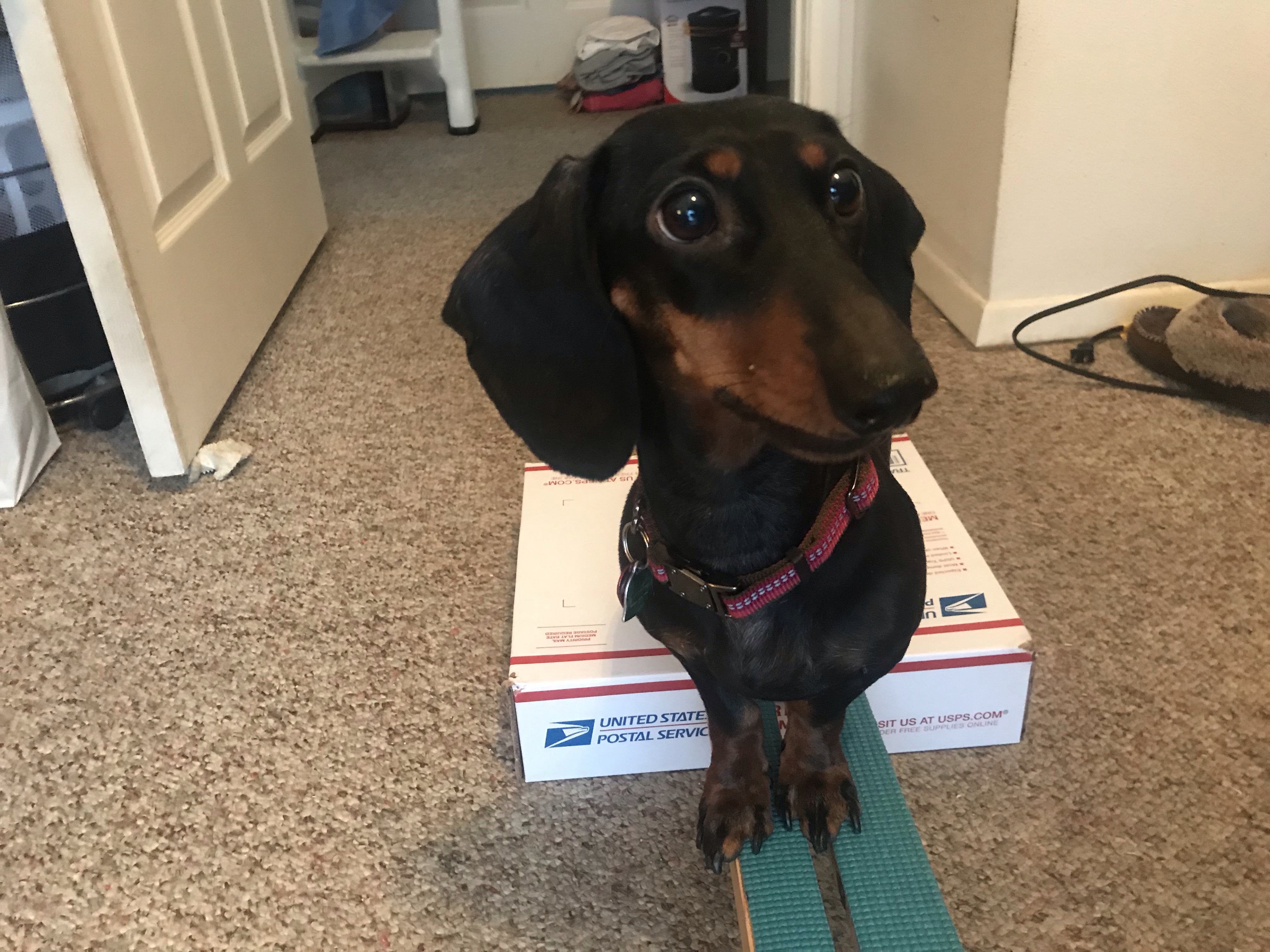 Maybe by later this week, Miss Rhonda will be able to preform this trick with the same jaunty confidence of her big bro, Baxter!