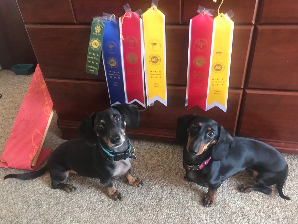 Well … the last weekend of February (one week ago), the dachshunds and I attended our first AKC Scent Work trial of 2021 (in Alaska, at least). It must be spring!
