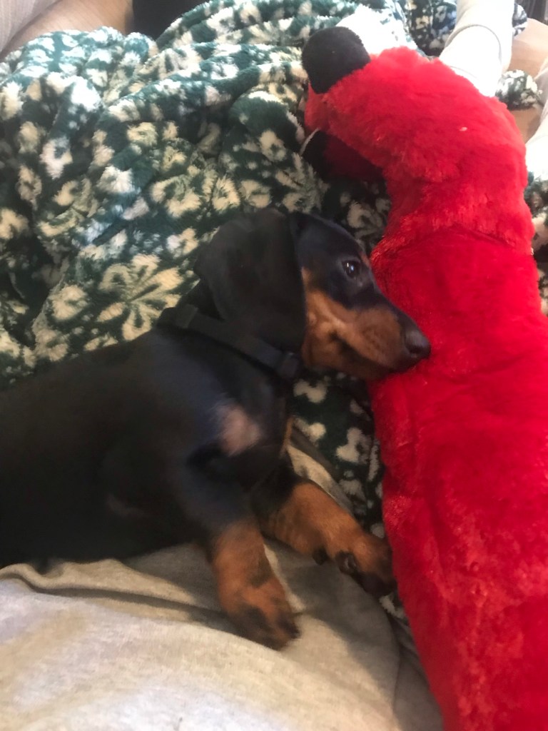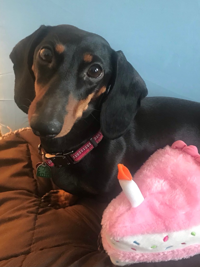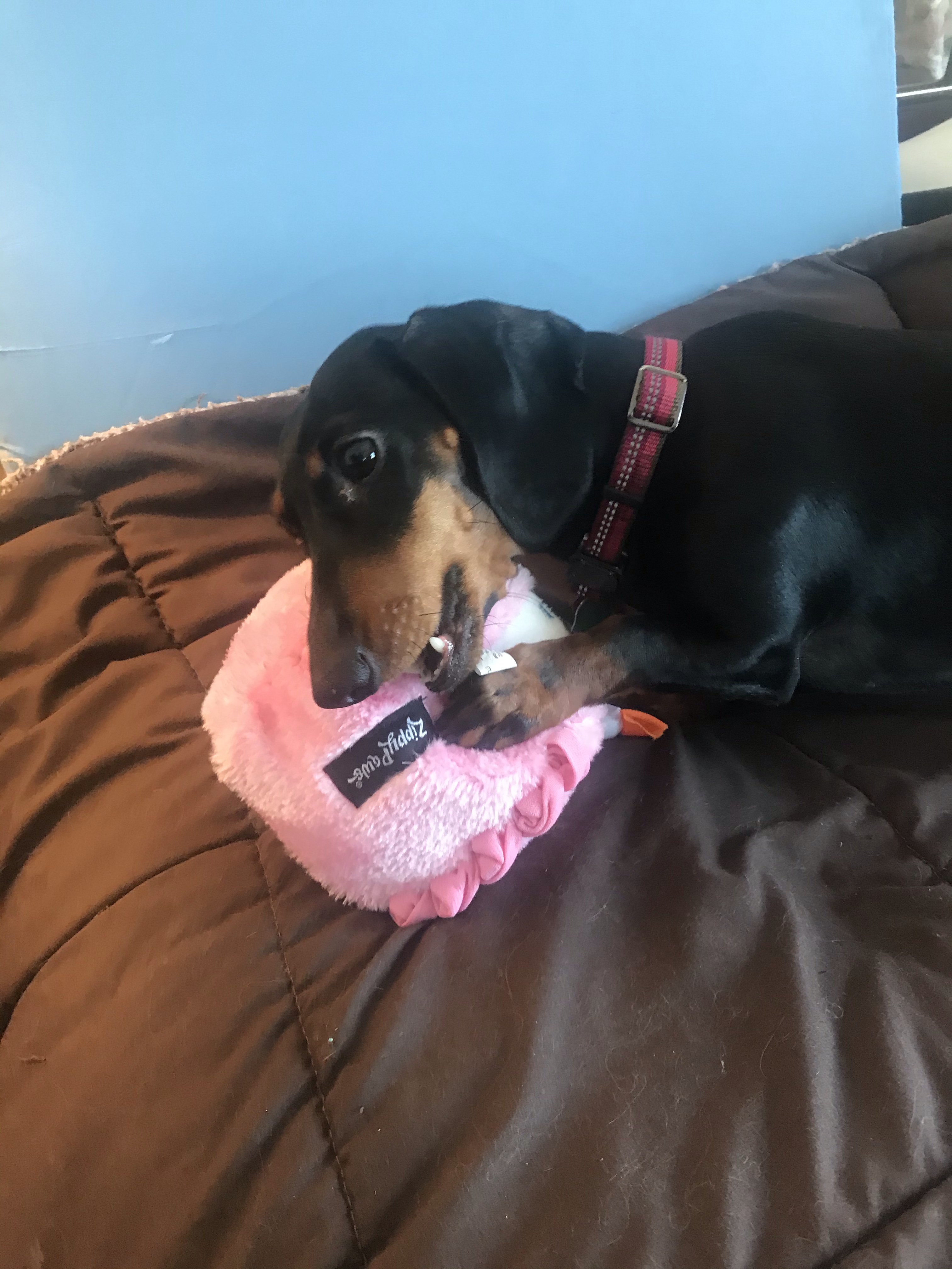 Ronni slept with Foxy (it smelled like her litter mates) for a full two weeks as a puppy before deciding to chew the ears off it, at which point we stored Foxy away – bringing her out for special birthday reunions. 🦊 Ronni still LOVES her Foxy!