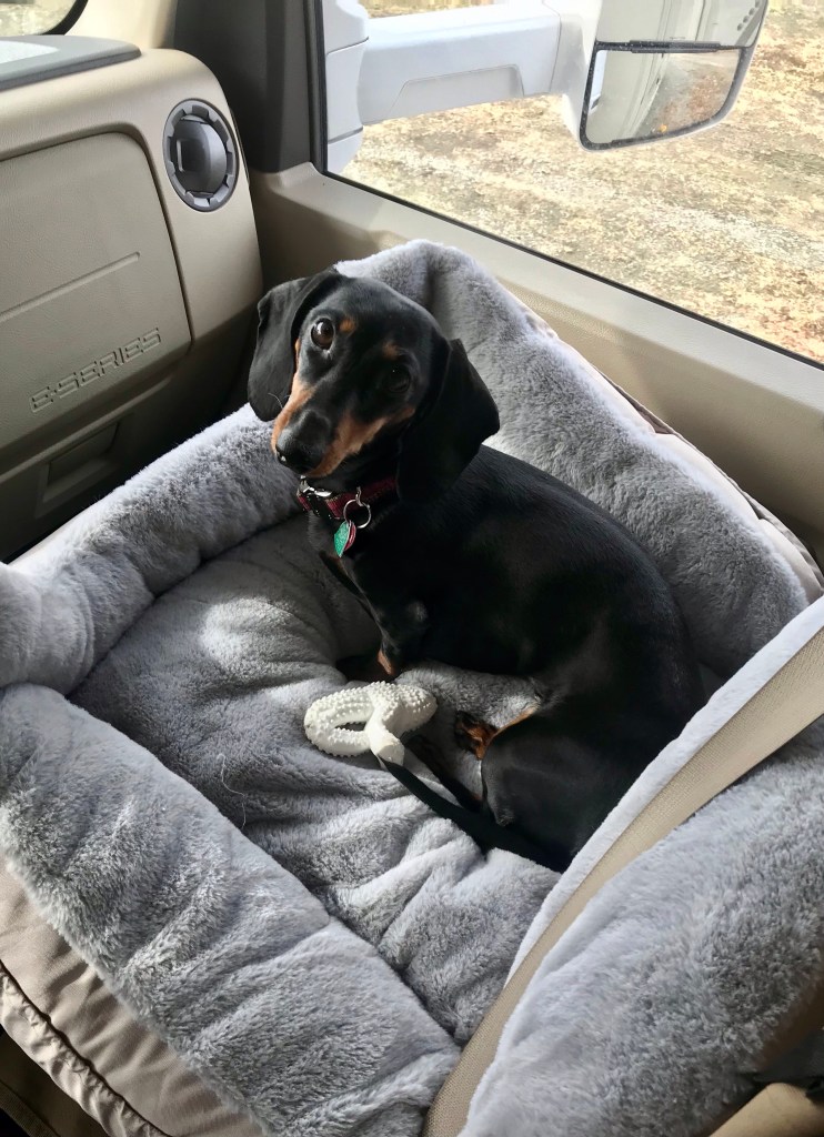 Rhonda soon abandoned her usual spot in my lap to take up “squirrel patrol” from her raised travel bed on the passenger seat of the RV.