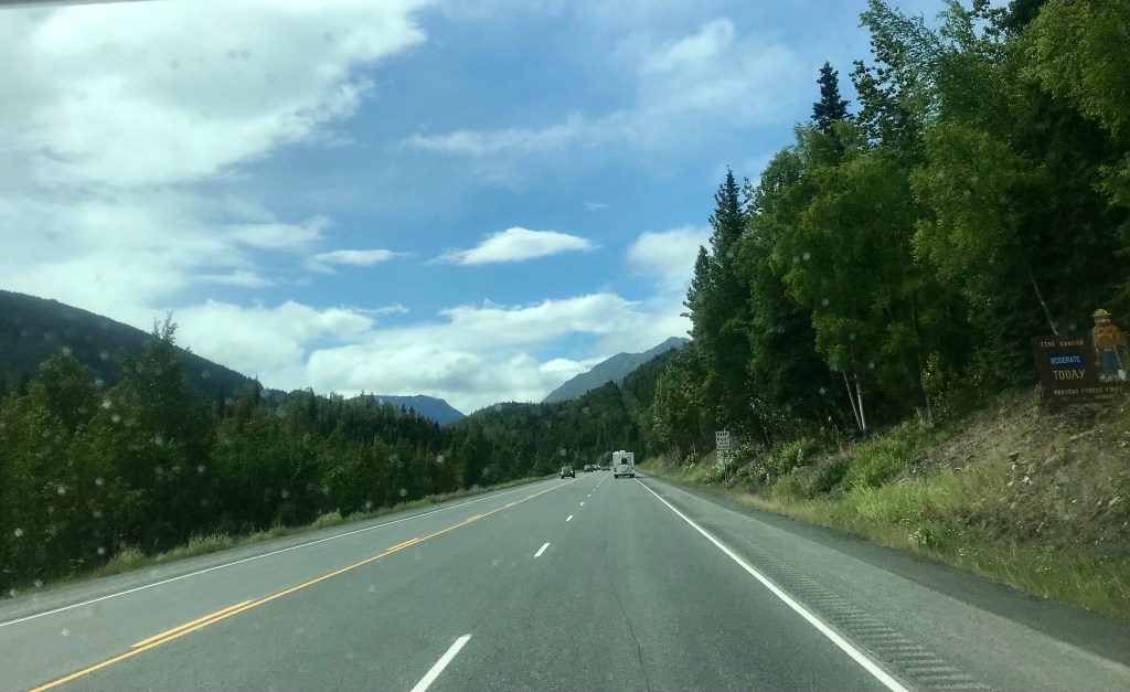 I left home under dark, gloomy skies, but at least it wasn’t raining. I planned on driving through Anchorage mid-day for the lightest traffic, which worked out well.
