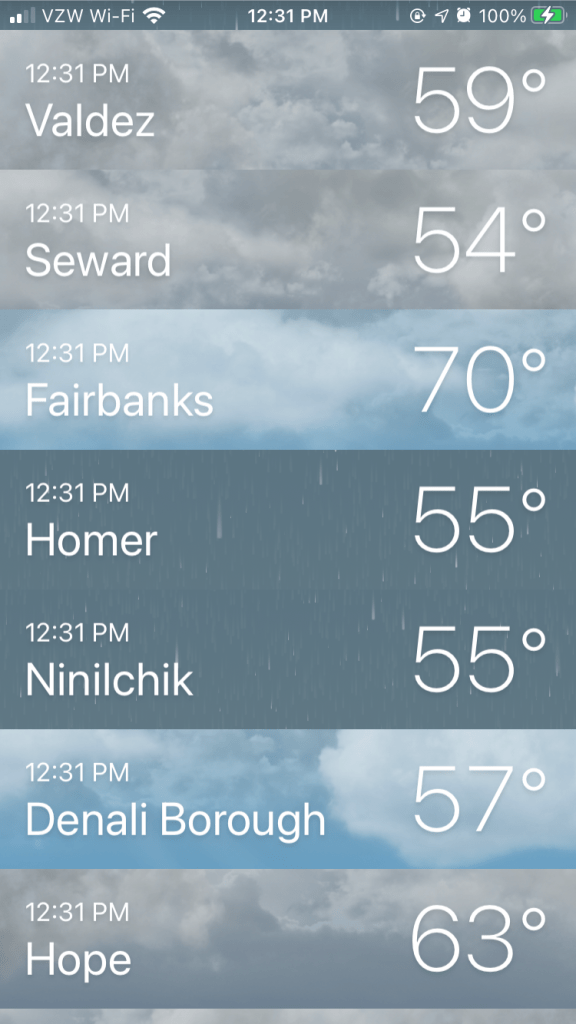 It’s still July in Alaska, so plenty of cars and RVs on the road, but not as hectic as Sundays.