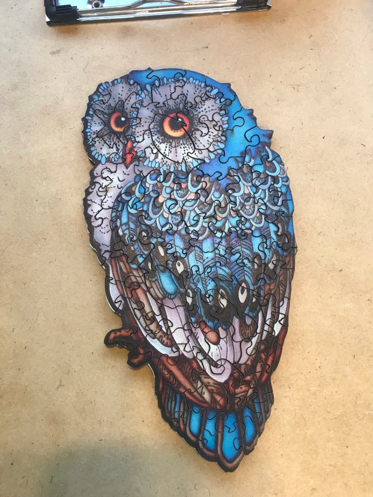 I pulled out DVDs for evening entertainment, and even got Jerry interested in helping me assemble another of my tiny, wooden owl puzzles while watching “Second-Hand Lions”.