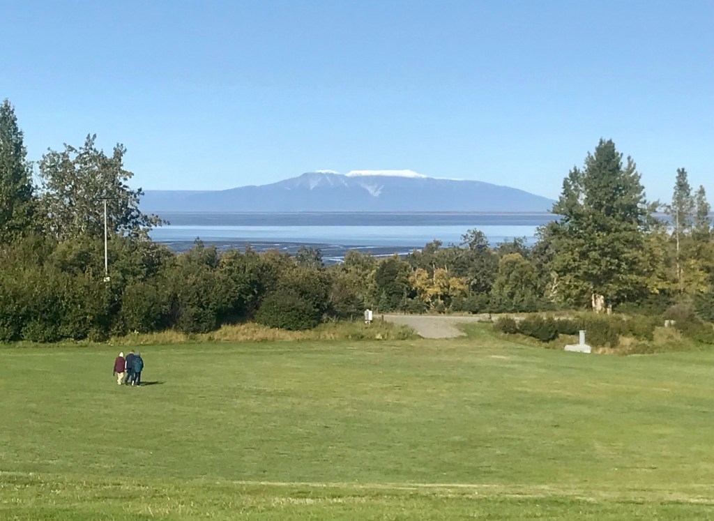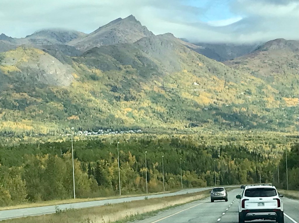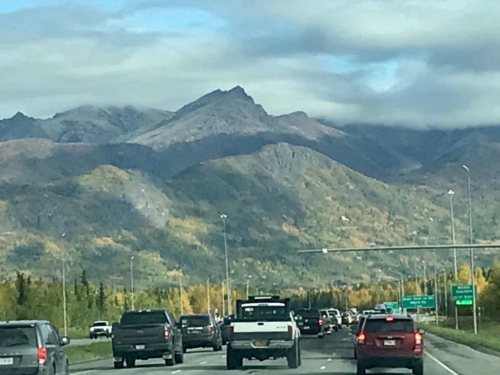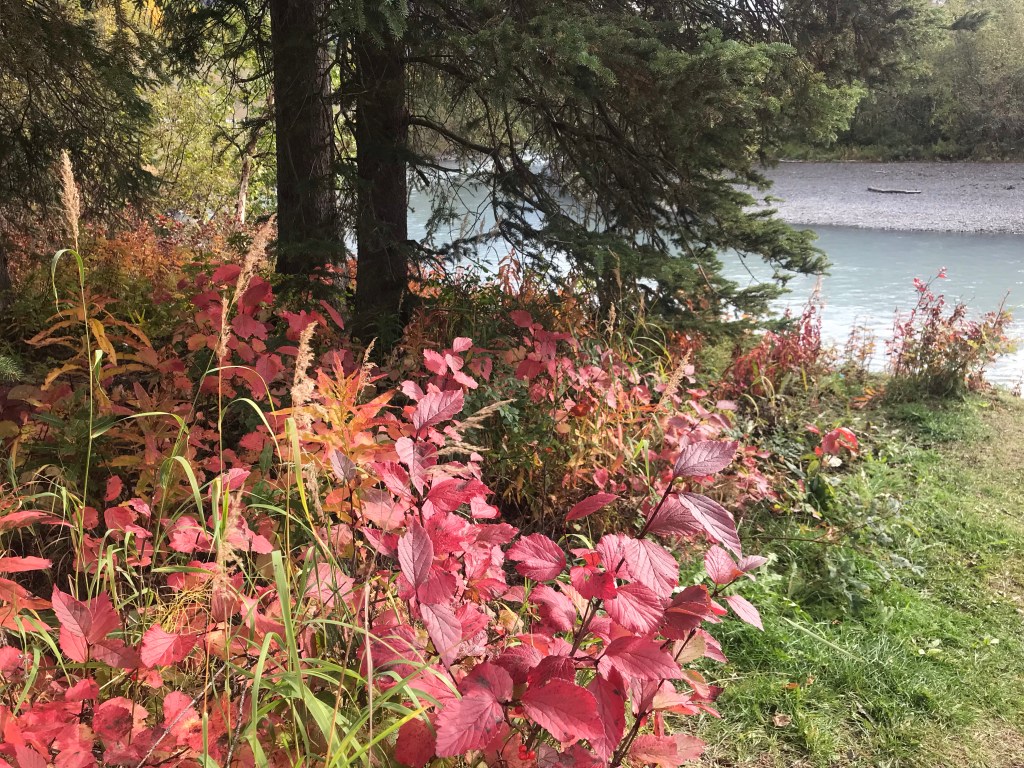 Being right on the shore of Cook Inlet, fall colors had not yet peaked here, although you can see “termination dust” along the top of Sleeping Lady (Mt. Susitna) in the background.