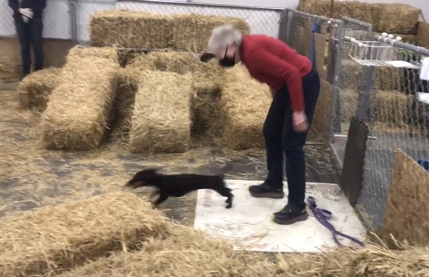Her favorite Barn Hunt rat-wranglers, Laurie and Valerie, had hidden five live rats (safely ensconced in tubes) for Ronni to hunt for among the stacks of straw bales today. What a treat!