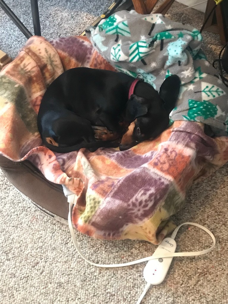 The dachshunds work as a tag team when it comes to making sure I get sufficient exercise during the summer months – but I noticed a distinct lack of enthusiasm on both ends of the leash once winter set in. In cold weather, we ALL prefer snuggling with a warm blanket. 😉