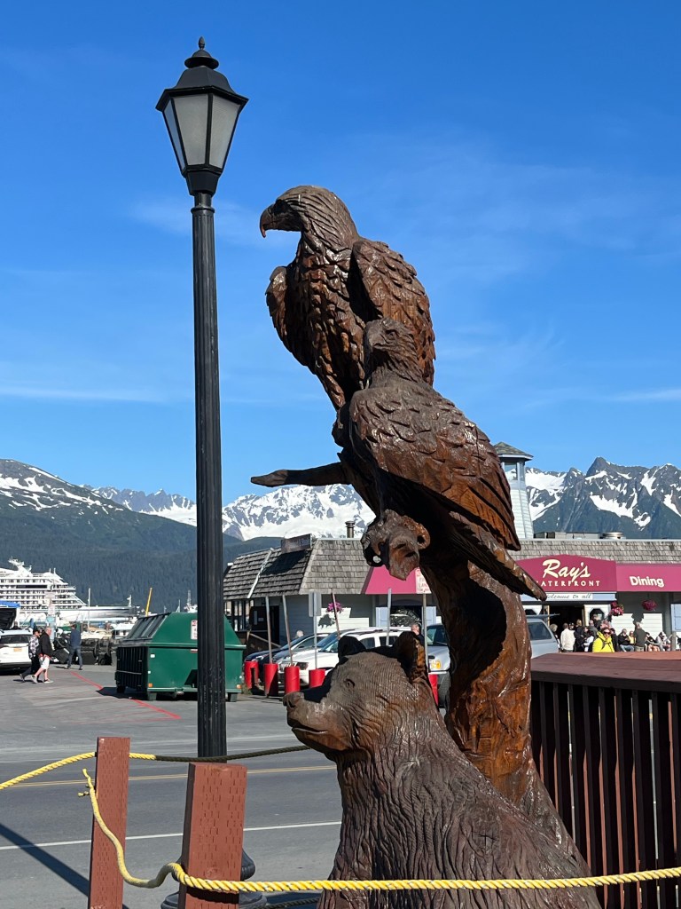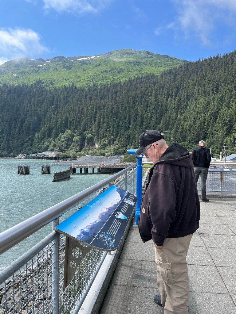 Jerry made up for the lack of a microwave breakfast (definitely no generators are allowed to fire up at 5:00 am!) by walking about a mile into the small boat harbor, where they cater to fishermen. By the time he was ready to come home (to the RV), the City of Seward’s free shuttle bus was running and happy to bring him back. At which time, I was just up and starting to make coffee.