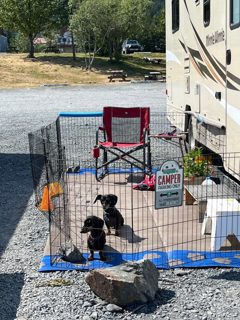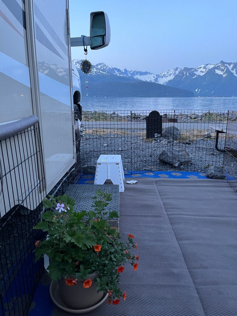 Hey, don’t be feeling all sorry for Jerry. Our RV is equipped with everything we could possibly need for five days of boon-docking along the edge of Resurrection Bay in Seward, Alaska. No electric hook-up simply means no television. Better yet!