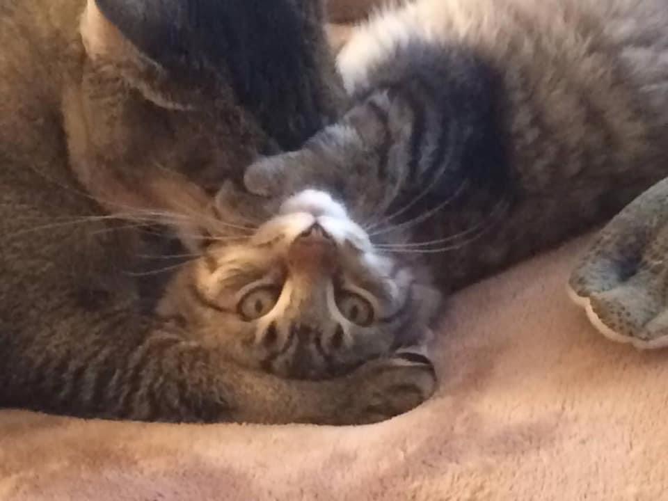 I have to thank my lucky stars for Buffy though. In 2014, if it hadn’t been for her loving, maternal instincts and unending patience, I honestly don’t believe Qiviut would have been savable. Completely feral when we finally live-trapped him at 9 weeks old (the rest of the litter having already been successfully brought in, gentled and found homes for much sooner), he was a growling, spitting, hissing ball of fur and fury – and claws. Very sharp claws.