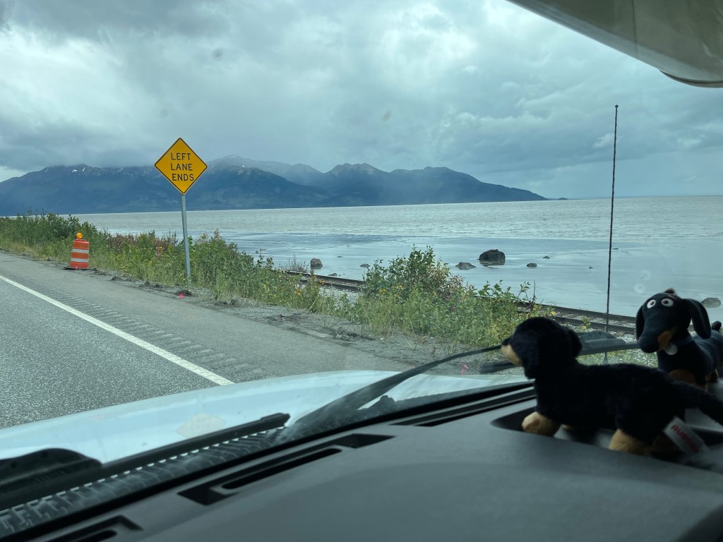 Rain and wind may come and go, but construction season is a constant in Alaska. You can count on it. In this case, the construction zone encompassed about eight miles of some of the most exposed, wind-vulnerable sections of this highway, and I was more than happy to take it at the required 45 mph, once we got moving again.