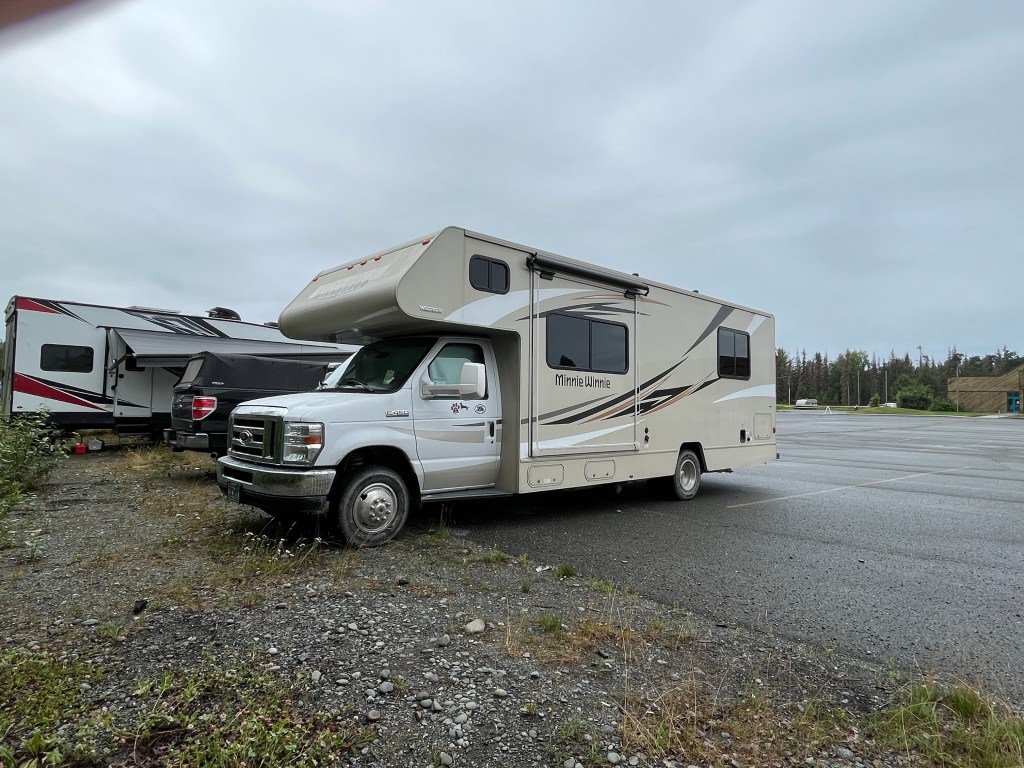 What can I say? It’s a parking lot. But WAY quieter than a packed campground of over 200+ sites filled with wet, excited fishermen. The salmon are running on the Kenai! Oh joy!