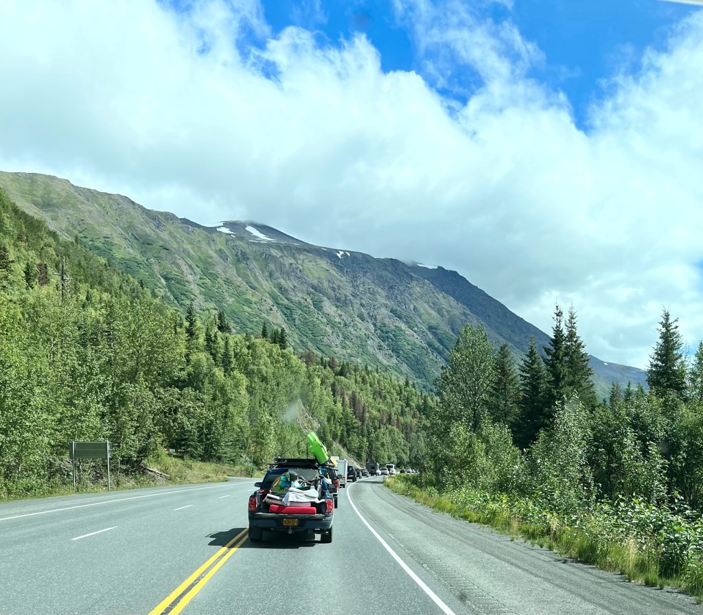 TRAFFIC! Right around 11:00 am on Sunday, every fisherman, tourist and camper in the Kenai peninsula (and double the usual numbers when the salmon are running!), are pulling out of their weekend or week-long campsites and hitting the road. And the overwhelming majority of them are heading towards Anchorage.