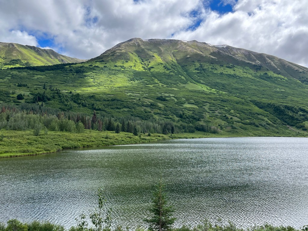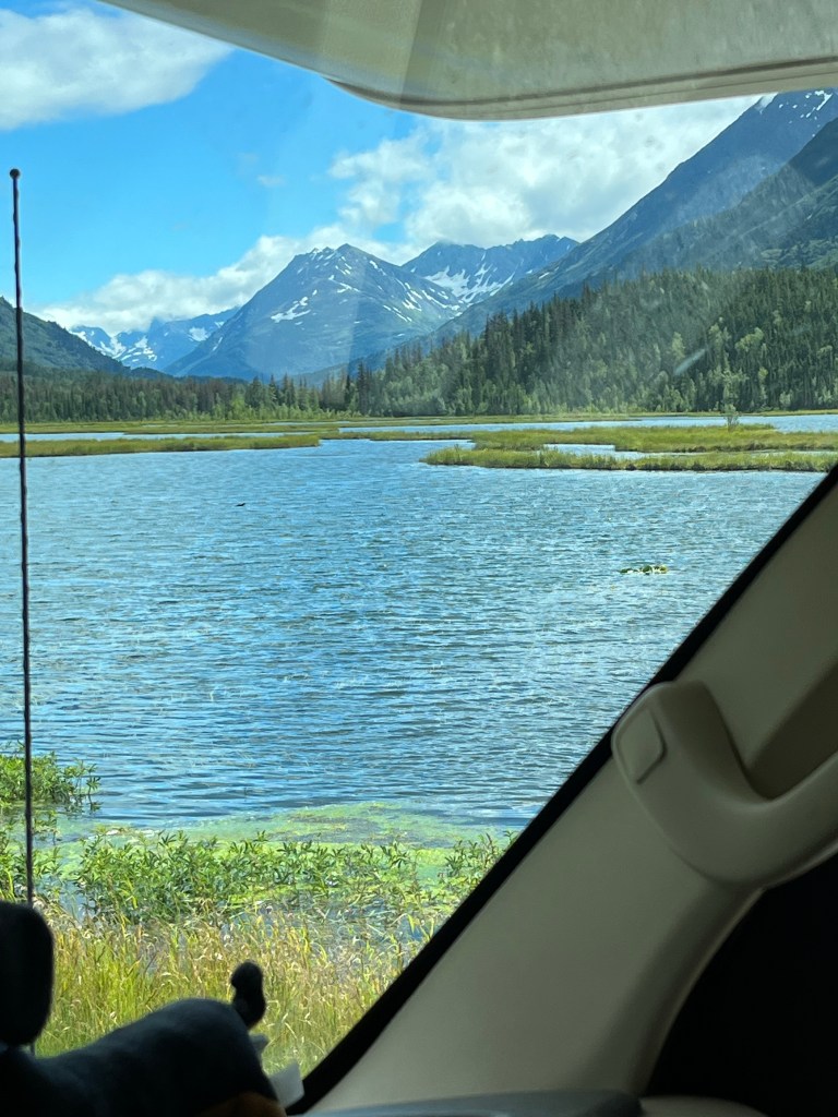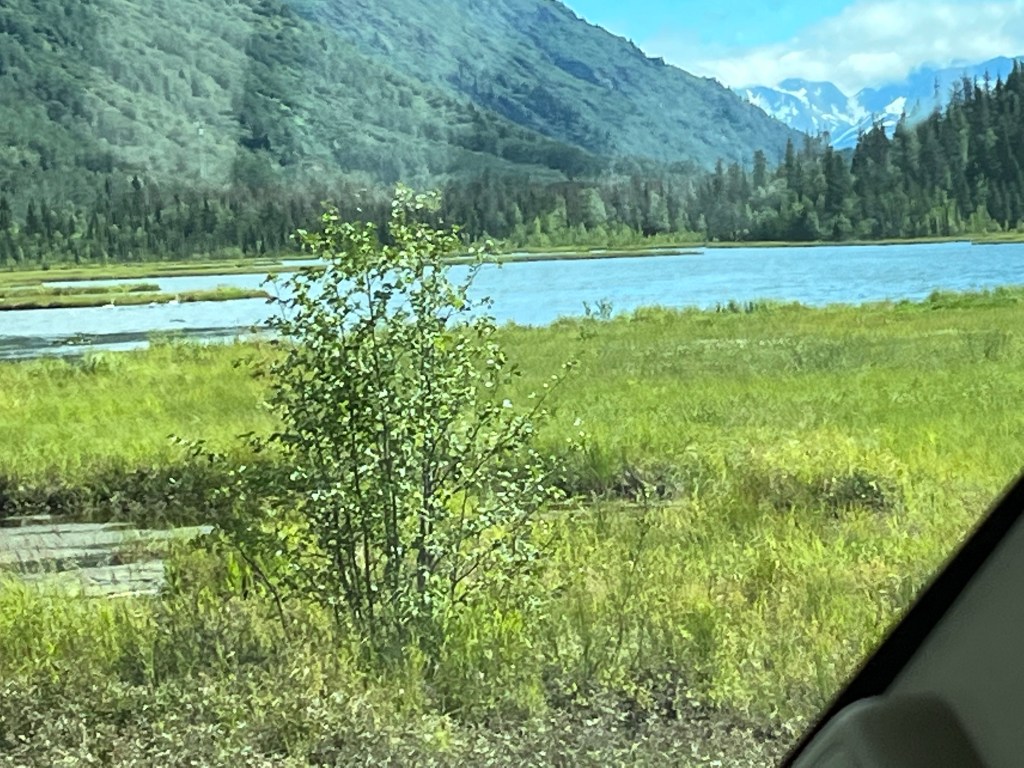 So, once I had joined the throng heading north along the Seward Hwy, I went into what I think of as “mirror-mode”. Knowing that, even going the speed limit, I would invariably end up with vehicles behind me who would rather be ahead of me on the winding two-lane highway, I kept both eyes on the road and simultaneously on my side mirrors.