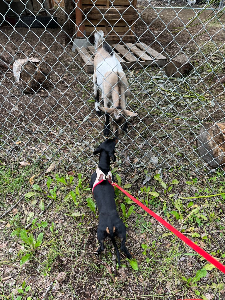 The fun fact that my coach door literally opens up to the chicken and turkey pen fence is purely icing on the cake. Baxter has been around livestock much of his life and won’t be concerned. The sound of goats might even be familiar and comforting.