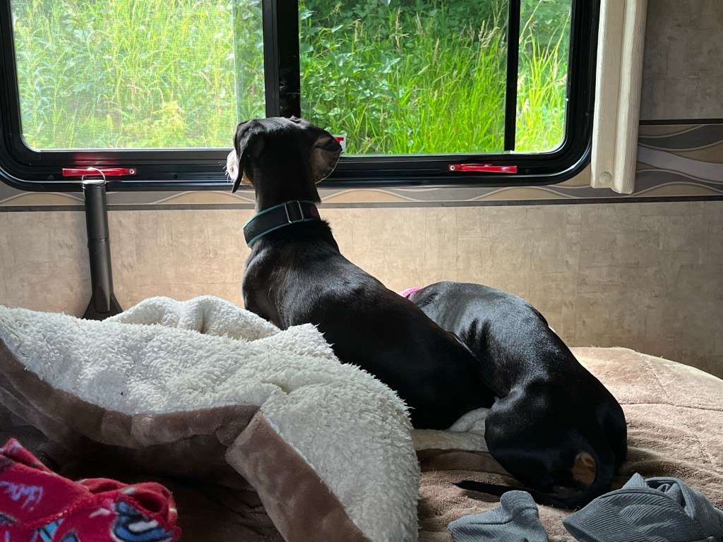 Since I was one of the first RVs to arrive, I had several choices of parking spots. I intentionally picked the site at the far end of the RV parking area, mostly because there would be less activity for Baxter to worry about.