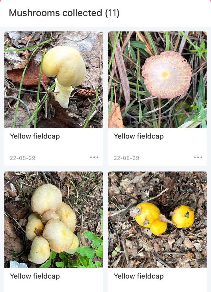 I also discovered that, again due to multiple weeks of rain, we had what seemed to be several new-to-me mushroom species, which turned out to be all of a single type – the non-stop wet conditions have encouraged multiple generations to grow at once, so they can be found in all growth stages, looking completely unique and different, and popping up strategically in various areas of the yard, I’m sure just to freak me out.