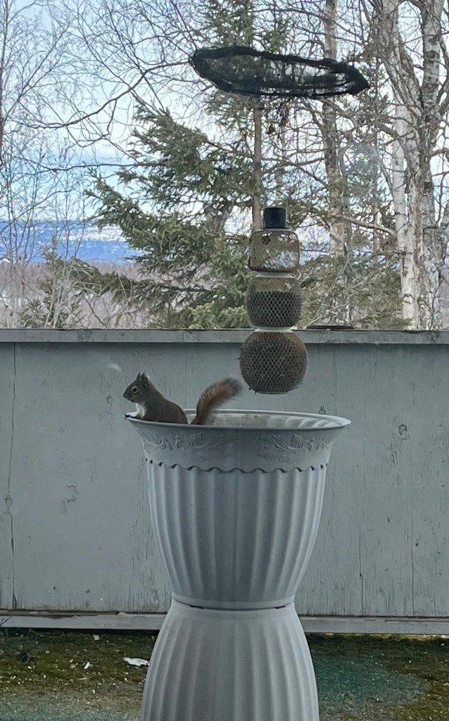 On the back side of the house, the strident chittering of Western Red Squirrels in the spruce trees beyond our back deck is a sure sign of impending Spring. Maud and her cohorts are solitary by nature most of the year, so hearing more than one can only mean courting has begun – and we’ll be welcoming baby squirrels in another month or so.
