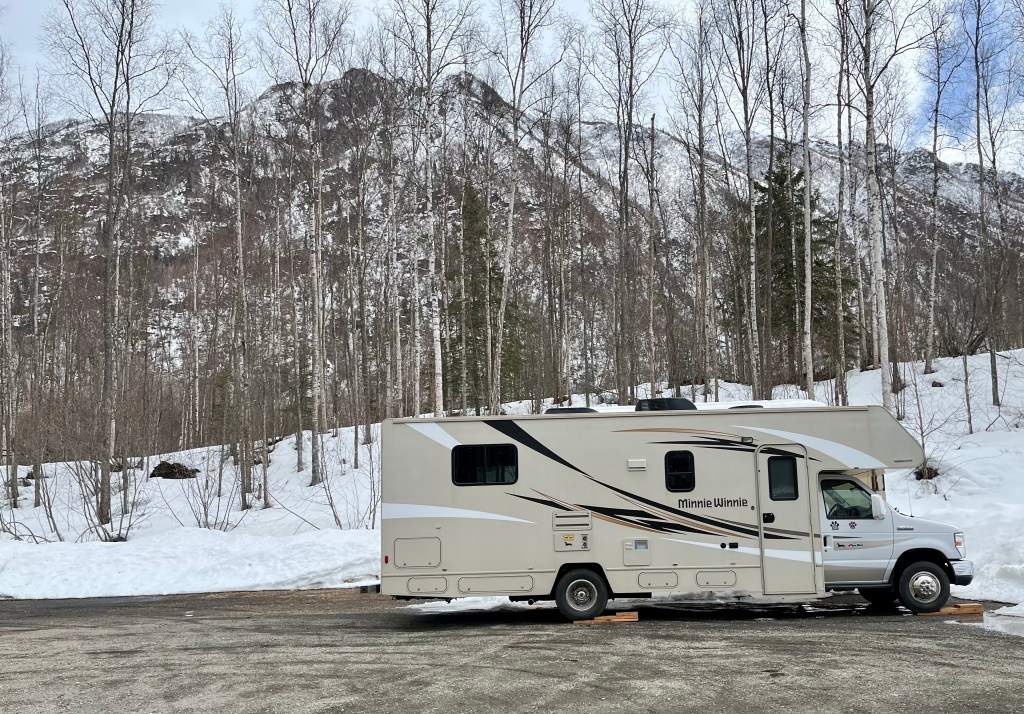 Baxter spent much of the day snoozing in various sunny spots inside the warm RV, with regular social and potty breaks.