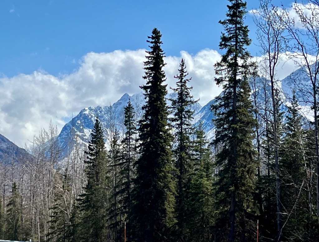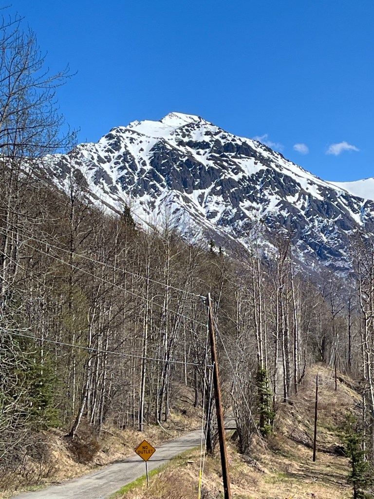 This quiet little trail side area, surrounded by trees and high, snow-capped peaks, easily fulfilled my desire to take a drive and see something beautiful. So, glitches not withstanding, I was happy to continue my Mother’s Day outing and head towards Anchorage and our planned dinner.