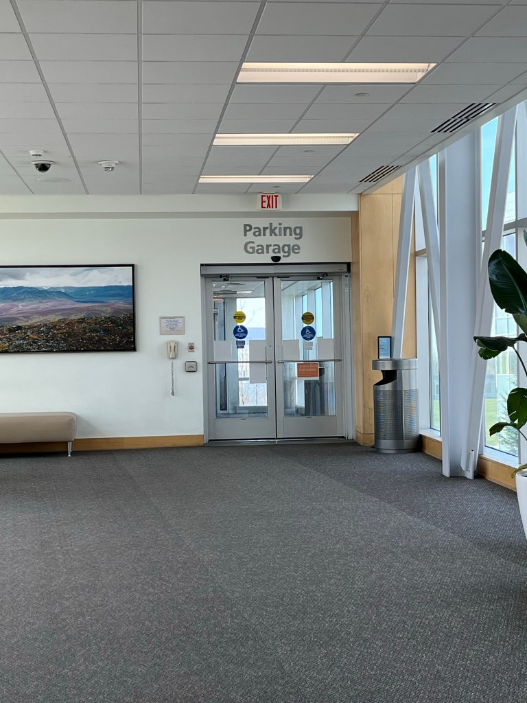 Eventually, the most beautiful sight filled my eyes. It was a fairly short, unimpressive little Sky-Walk. At the far end was a small sign above the door. It read, “Parking Garage “.
