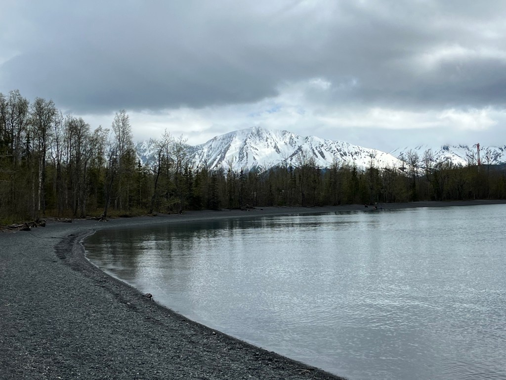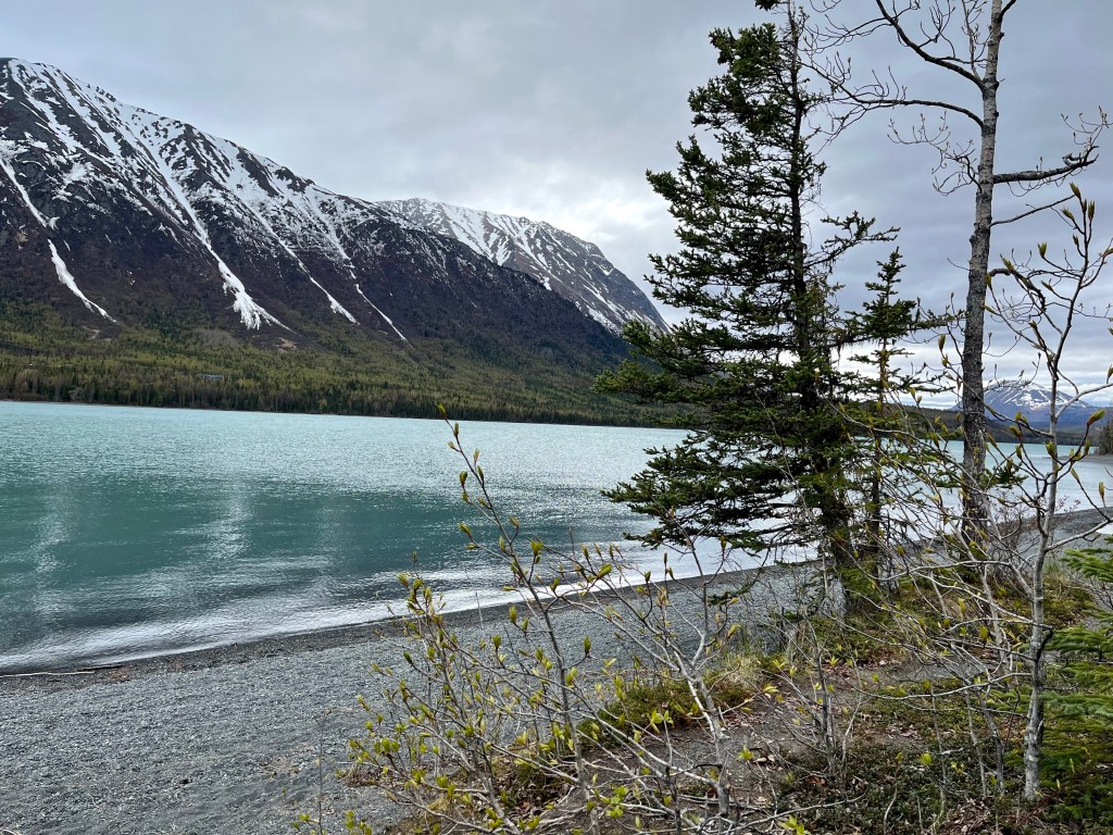 The weather remains overcast, but Kenai Lake never fails to impress.